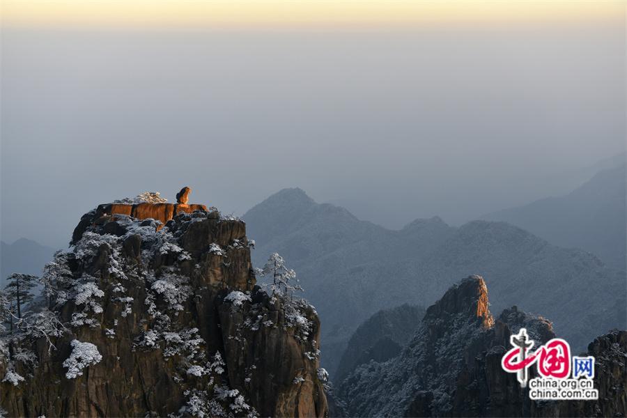 2024年1月2日夜,黃山下了新年的第一場(chǎng)初雪。1月3日早雪后的黃山銀裝素裹,在陽(yáng)光下晶瑩剔透。本組照片拍攝于獅子峰。獅子峰在黃山后山的北海景區(qū),這里群峰競(jìng)秀、巧石眾多,清涼臺(tái)、猴子觀(guān)海都這座山上,“不到獅子峰不見(jiàn)黃山蹤”是北海的風(fēng)景窗。