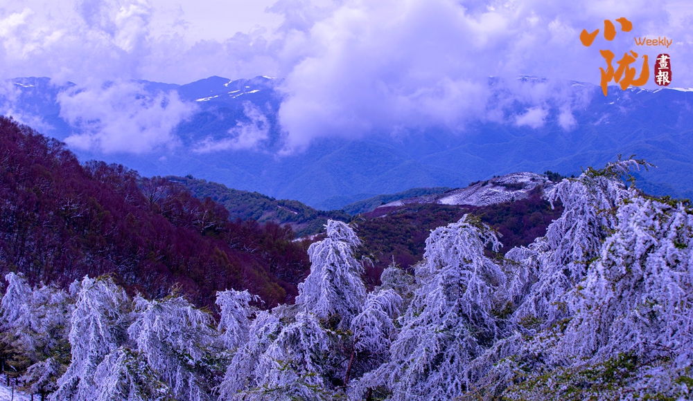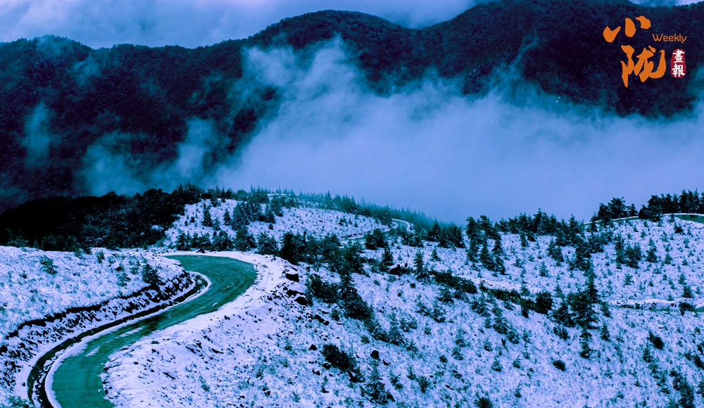 白雪覆蓋的關(guān)山,煙雨蒙蒙,云海此起彼伏,山峰時(shí)隱時(shí)現(xiàn),有著往常完全看不到的景色,云、霧、雪交織的美就在這里。