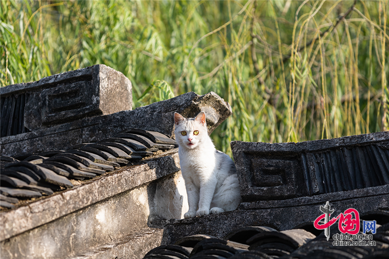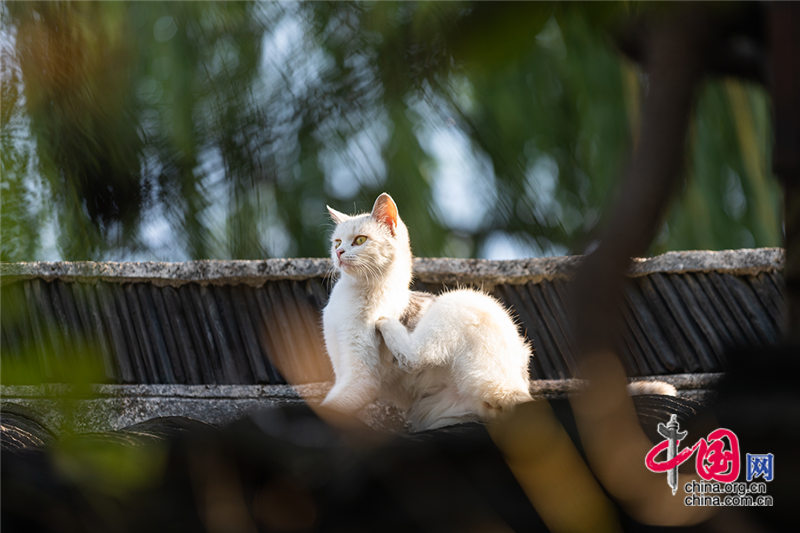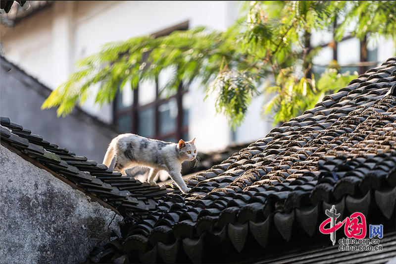 在毛孩子眼里,這就是包容一切活動的「游樂場」,片片青瓦上留下梅花印。或許你也該往古鎮(zhèn)的屋頂上瞧,檐角翹伸、清風(fēng)古韻,讓人心曠神迷。或同那只貓一樣攀上高處,推窗看那水那橋,那木門青瓦,就是江南水鄉(xiāng)的具象。