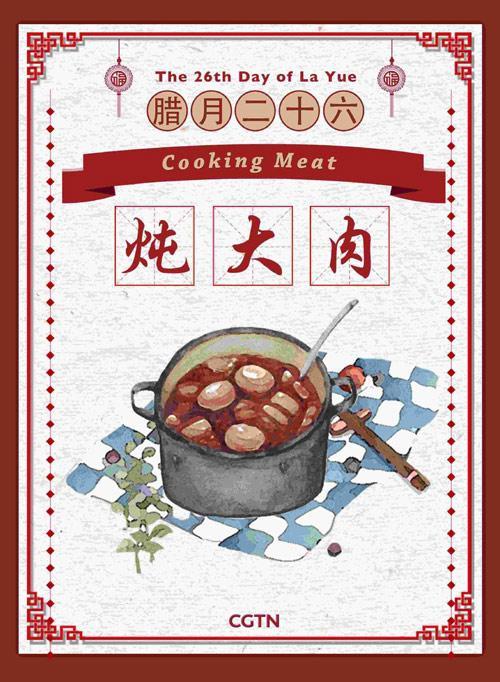 臘月二十六這天,許多家庭通常都會燉豬肉和吃豬肉。不養(yǎng)豬的家庭會去當?shù)丶匈I一大塊肉。在過去的農(nóng)業(yè)社會,人們只有在春節(jié)才能吃上肉。吃肉也代表著一年中最盛大的慶?;顒印?/p>
