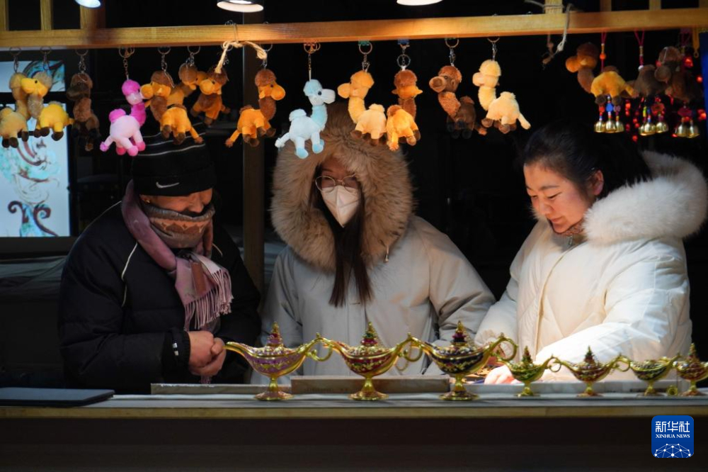 1月21日,在甘肅省敦煌市的敦煌夜市,游客選購(gòu)紀(jì)念品。新華社記者 馬希平 攝