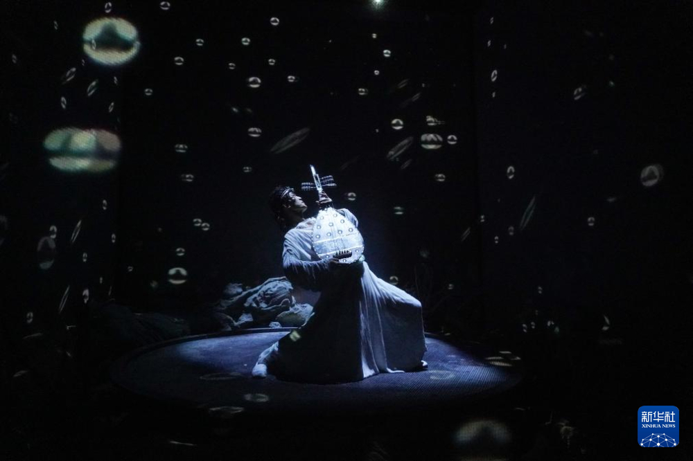 1月21日,在甘肅省敦煌市,演員在大型洞窟式沉浸體驗(yàn)劇《樂動(dòng)敦煌》中表演。新華社記者 馬希平 攝