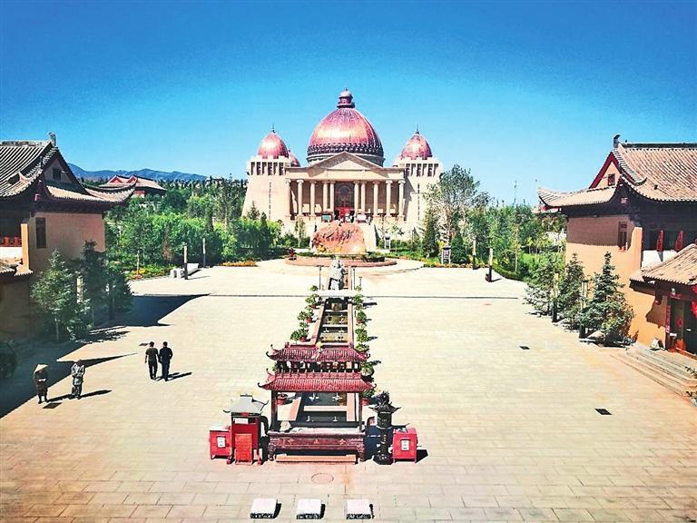 “驪靬古城”又被稱為“和平之城”。古城建在原古寺金山寺舊址上,城墻氣勢恢宏,東西南北各建門樓,四角各筑角樓。城內建筑錯落布局,尤以外形具羅馬式建筑風格的“萬神殿”最醒目,金色穹頂,羅馬石柱,刻有圖案,工藝精致,清新典雅。拾級上城墻,四周杏黃旗圍繞,迎風獵獵。城東古羅馬廣場小巧玲瓏,別具一格;城南祁連山山巒相連,松柏林立;城西巍峨俊秀的胭脂山遙遙相對;城北建有幸福樂園。遠眺,永昌縣城全貌一覽無余。