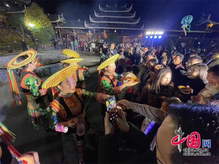 好在天氣給臉,年三十到正月初五,天天陽光明媚,溫暖熙熙,給演唱會的人氣奠定了很好的基礎(chǔ)。你瞧,穿巖山景區(qū)楓香瑤寨、千里古寨、雁棲山莊、蒲安沖民宿、時珍園康養(yǎng)上千個房間都住滿了游客,都連統(tǒng)溪河鎮(zhèn)上的酒店、客棧都是爆棚。從婁底趕來李小苑一家五口和唐詩一家三口,結(jié)伴而來,沒有住處,只好到遠(yuǎn)離景區(qū)15公里的縣城住下,然后去景區(qū)吃晚飯,晚上觀看演出。唐詩對筆者說,我來過穿巖山,感覺這里的風(fēng)景好看,工作人員也很客氣,有那么多的住宿點(diǎn),我就沒有預(yù)訂。想不到來了之后,全訂完了。
