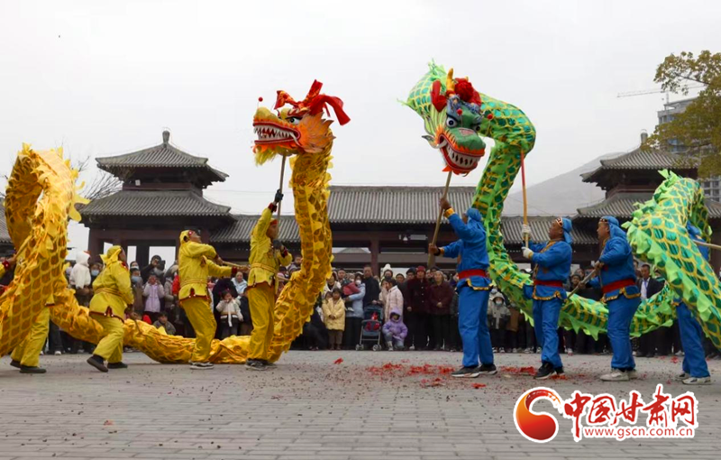 為促進文化和旅游融合發(fā)展,春節(jié)期間,隴南市組織了多場文藝活動進景區(qū)活動,當(dāng)?shù)厝罕娊M織的舞獅子、舞龍、踩高蹺等傳統(tǒng)社火紛紛走進相鄰景區(qū)進行表演,推進文化與旅游深度融合發(fā)展。
