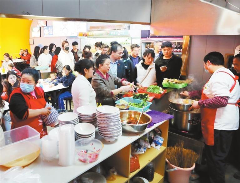 夜?jié)u深,蘭州黃河食渡文旅美食街依然熱鬧非凡,天水麻辣燙的攤位上人聲鼎沸。