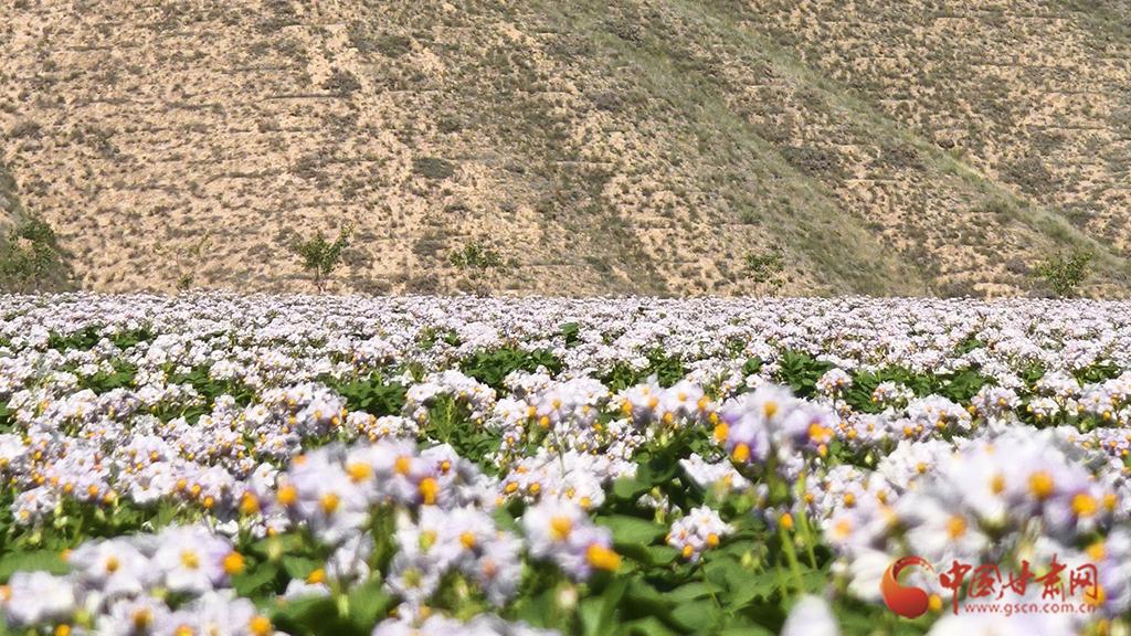 近日,蘭州新區(qū)中通道西側(cè)生態(tài)修復(fù)項(xiàng)目,千畝洋芋花開正盛,曾經(jīng)山溝縱橫的這里呈現(xiàn)出勃勃生機(jī)。