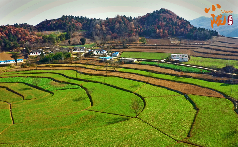 遠(yuǎn)處群山連綿起伏、籠罩在一層薄薄的霧中,若隱若現(xiàn),和一年四季綠油油、五彩斑斕的村莊相互映襯,猶如一幅古樸淡雅的鄉(xiāng)村寫意畫。