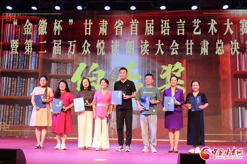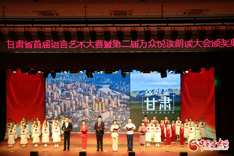 在展演環(huán)節(jié),參賽選手們用豐富多彩的語(yǔ)言表演形式,聲情并茂的舞臺(tái)演繹,為觀眾呈現(xiàn)了一場(chǎng)精彩絕倫的視聽盛宴,贏得了現(xiàn)場(chǎng)觀眾經(jīng)久不息的掌聲,頒獎(jiǎng)儀式在合誦《這就是甘肅》中落下帷幕。