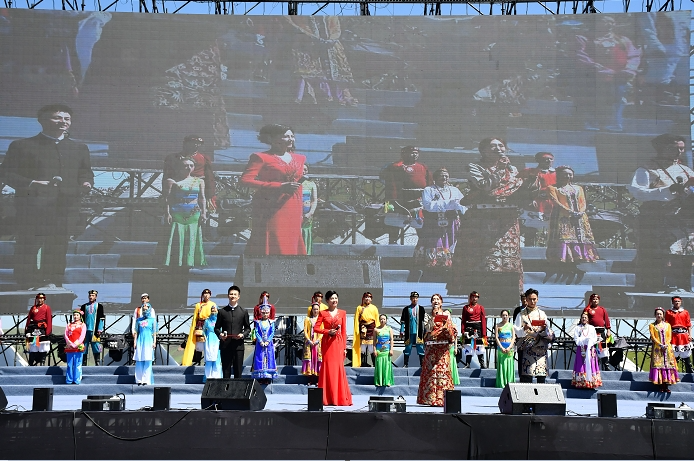 草原兒女在激昂的旋律中共同唱響草原大合唱《我和我的祖國》,感受甘南各族群眾對祖國的深深眷戀和熱愛。甘南,不僅有自然之美、和諧之美,更有人文之美,大合唱《走向復興》體現(xiàn)了甘南別具一格的文化底蘊,展現(xiàn)了甘南是長江和黃河的精彩邂逅、青藏高原和黃土高原的熱情擁抱、游牧文明和農(nóng)耕文明的美麗碰撞、民俗文化和宗教文化的有機融合。