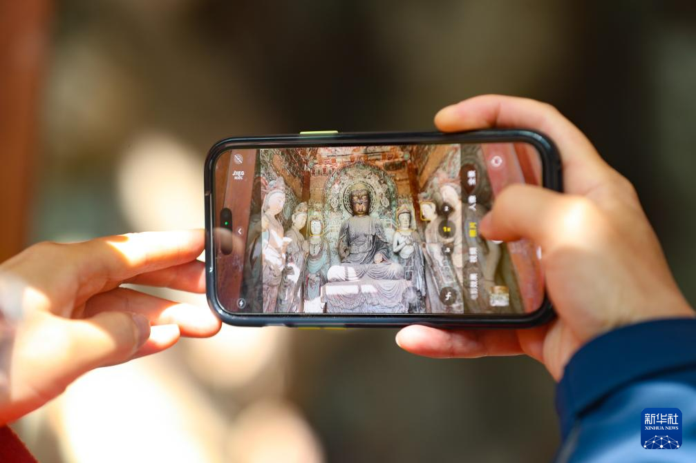 11月2日,游客在麥積山石窟參觀。新華社記者 陳斌 攝