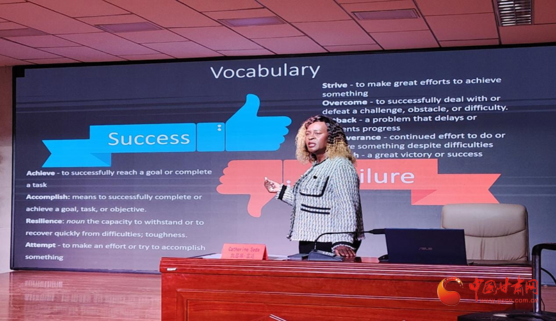 外籍教師Catherine Seda(凱瑟琳-塞達(dá))以其深厚的英語(yǔ)專(zhuān)業(yè)素養(yǎng)和生動(dòng)的學(xué)習(xí)和生活情境,為在場(chǎng)的師生們帶來(lái)了一場(chǎng)語(yǔ)言學(xué)習(xí)盛宴,激發(fā)了同學(xué)們對(duì)英語(yǔ)學(xué)習(xí)的濃厚興趣。
