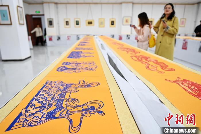 11月19日,“蘭州剪紙”非遺傳承人李自新、李麟桐剪紙藝術展在甘肅省蘭州市開幕,展出以敦煌壁畫、隴上風物等為題材,精心創(chuàng)作的剪紙作品。圖為展出的剪紙作品。中新社記者 九美旦增 攝