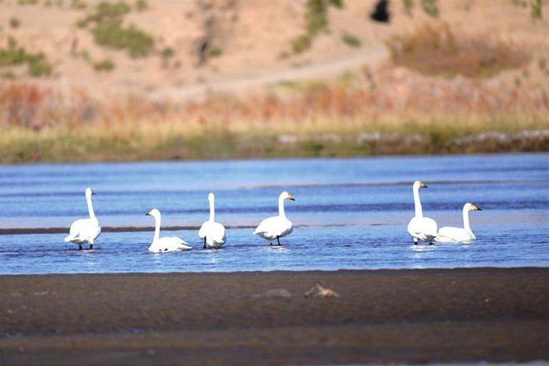 近日,高臺縣黑河濕地多次監(jiān)測到大天鵝種群,它們的翩翩降臨,標(biāo)志著天鵝一年一度的越冬之旅正式開啟。 大天鵝是雁形目鴨科天鵝屬鳥類,又稱黃嘴天鵝,全身潔白,僅頭稍沾棕黃色;喙黑色,上喙基部黃色,喙端黑色;跗跖、蹼、爪也為黑色,是國家二級保護動物。天鵝對棲息地的選擇極為苛刻,它們的到來是高臺縣黑河濕地生態(tài)環(huán)境質(zhì)量優(yōu)良的有力證明。