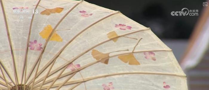 在最佳觀賞期來到村子里,游客朋友們還能看到和銀杏相關(guān)的非物質(zhì)文化遺產(chǎn)。這是已經(jīng)傳承了300多年的騰沖傳統(tǒng)非遺——油紙傘。這把傘在制作階段,就將銀杏葉放入了宣紙之間。打起油紙傘,就仿佛銀杏葉落在了傘上,充滿意趣。