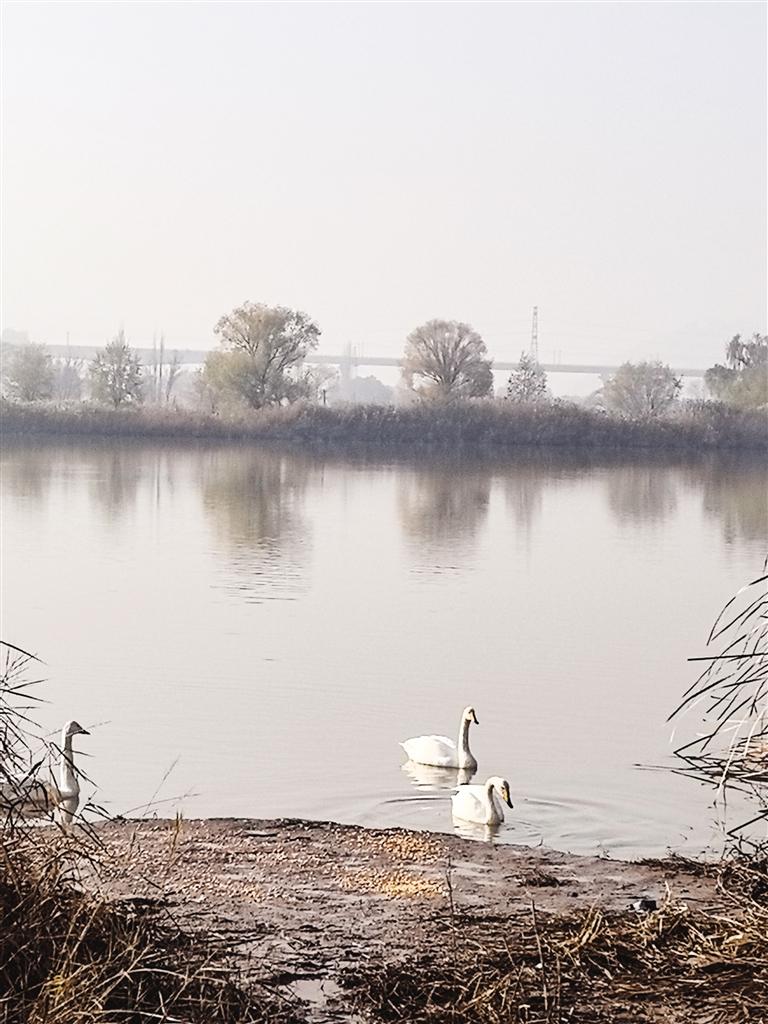 志愿者達(dá)朝陽(yáng)對(duì)記者說(shuō):“如今,我們這里成了賞鳥(niǎo)打卡地,每天都有5至6人的志愿隊(duì)伍來(lái)這里清理垃圾,勸阻個(gè)別游人的不文明行為。每次看到這些天鵝和其他候鳥(niǎo)在我們這里歡快地覓食、嬉戲,我們就感到特別滿足和自豪。”