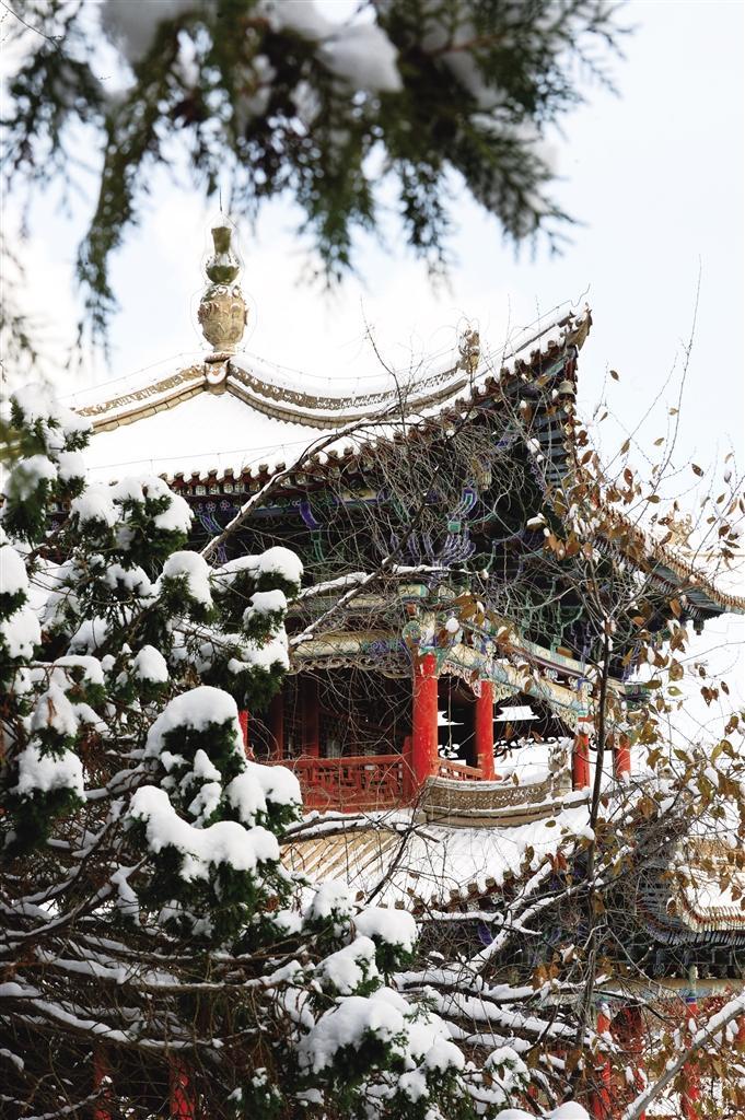 11月25日,雪后的蘭州五泉山公園銀裝素裹,迷人雪景如畫。古老亭臺樓閣紅墻玉頂、參天古樹玉樹瓊枝,宛如大地書寫的一幅“水墨丹青”,美不勝收,游客紛至沓來,賞雪、拍照,盡情享受清爽的空氣和潔白的美景。 奔流新聞·蘭州晨報(bào)記者 裴強(qiáng) 攝