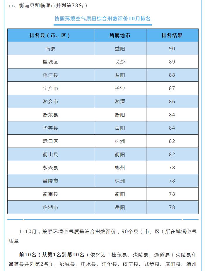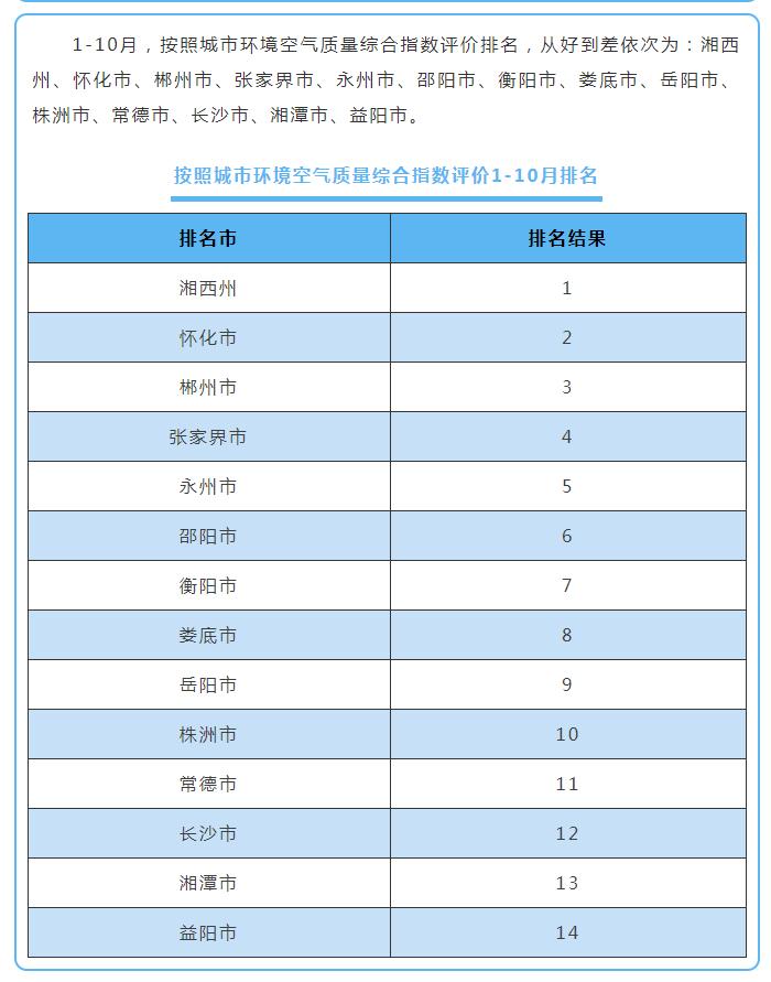原標(biāo)題:10月湖南環(huán)境空氣質(zhì)量:湘西張家界位居前茅