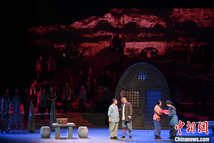 11月28日晚,甘肅省歌劇院在位于蘭州市的黃河劇院舉行“薪火相傳85年”院慶系列演出活動,集中展示85年來本土民族歌劇創(chuàng)作的豐碩成果。圖為甘肅省歌劇院原創(chuàng)民族歌劇《呼兒嘿喲》演出現(xiàn)場。中新社記者 九美旦增 攝