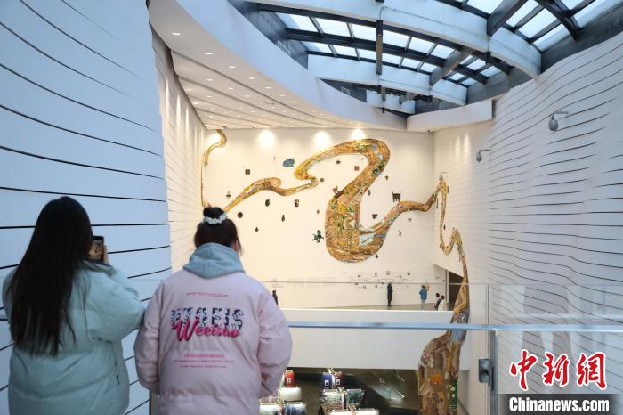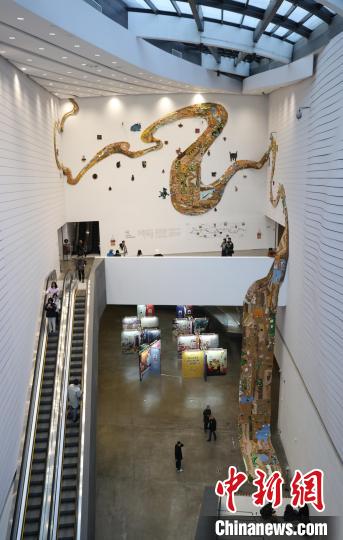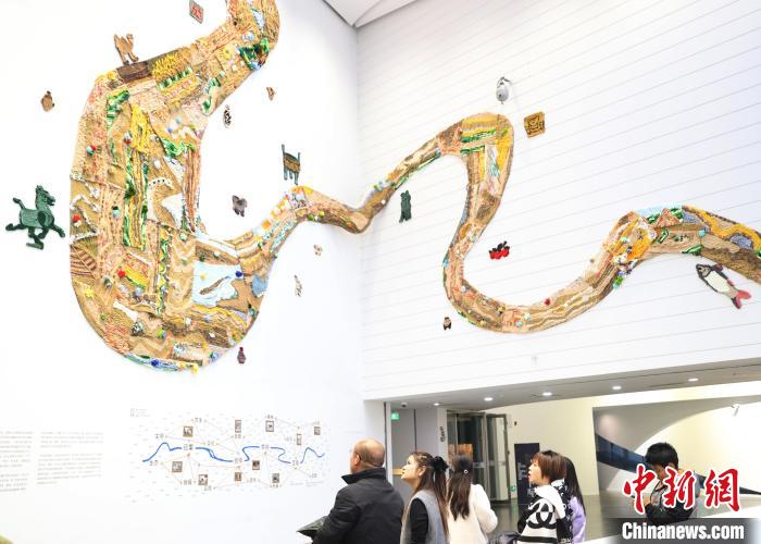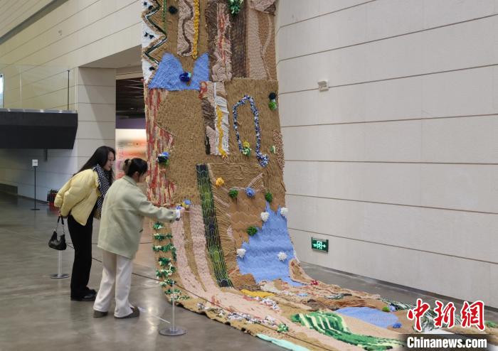 12月8日,市民在寧夏銀川當(dāng)代美術(shù)館欣賞“奔流的舞姿:藝起織造母親河”藝術(shù)展。當(dāng)日,“奔流的舞姿:藝起織造母親河”公益項目藝術(shù)展在銀川當(dāng)代美術(shù)館正式對公眾開放。該項目匯聚了黃河兩岸200余位織手的巧作,按照黃河特點(diǎn)和視覺審美拼接和織造,織造出一個極具視覺效果的“大河”,通過藝術(shù)的橋梁,展示奔涌黃河的優(yōu)美舞姿和不息精神,同時激發(fā)社會各界對黃河生態(tài)保護(hù)的共識與行動。中新社記者 于晶 攝