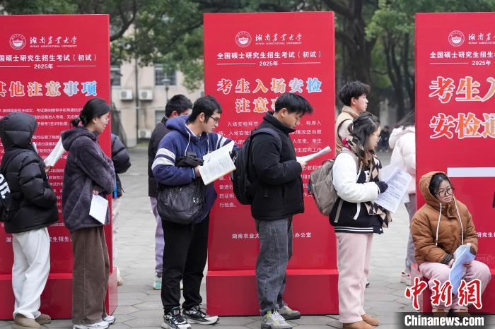 12月21日,2025年全國(guó)碩士研究生招生考試初試開考,眾多考生來到湖南農(nóng)業(yè)大學(xué)考點(diǎn)參考。據(jù)教育部數(shù)據(jù)顯示,2025年全國(guó)碩士研究生報(bào)名人數(shù)為388萬,相比去年下降50萬人,已是連續(xù)兩年報(bào)名人數(shù)下降。圖為志愿者將椅子與取暖設(shè)備送入考場(chǎng)。中新社記者 楊華峰 攝