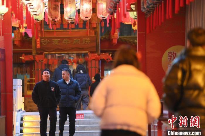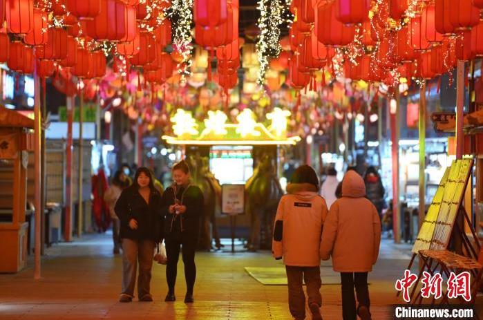 1月13日晚,甘肅敦煌夜市內,游人感受新春燈飾。據了解,從2024年12月1日至2025年2月28日,當?shù)伉Q沙山月牙泉、玉門關、敦煌雅丹世界地質公園等景區(qū)對國內外所有游客免門票,莫高窟門票實行半價優(yōu)惠,開放洞窟由8個增加至10個,為游客提供了更為豐富的觀賞內容。中新社記者 李亞龍 攝