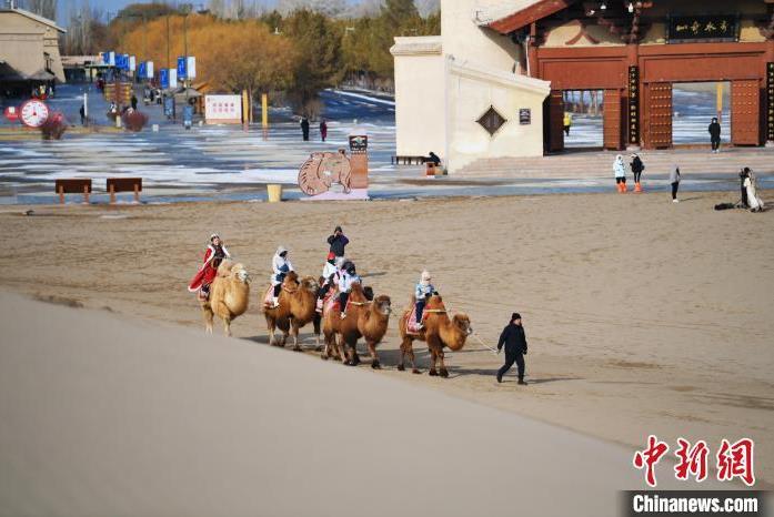 1月13日,甘肅敦煌鳴沙山月牙泉景區(qū)內,游人免票游玩。中新社記者 李亞龍 攝