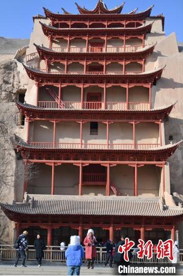1月13日,甘肅敦煌莫高窟景區(qū)內,游人在莫高窟標志性建筑九層樓前拍照打卡。據了解,從2024年12月1日至2025年2月28日,當?shù)伉Q沙山月牙泉、玉門關、敦煌雅丹世界地質公園等景區(qū)對國內外所有游客免門票,莫高窟門票實行半價優(yōu)惠,開放洞窟由8個增加至10個,為游客提供了更為豐富的觀賞內容。中新社記者 李亞龍 攝