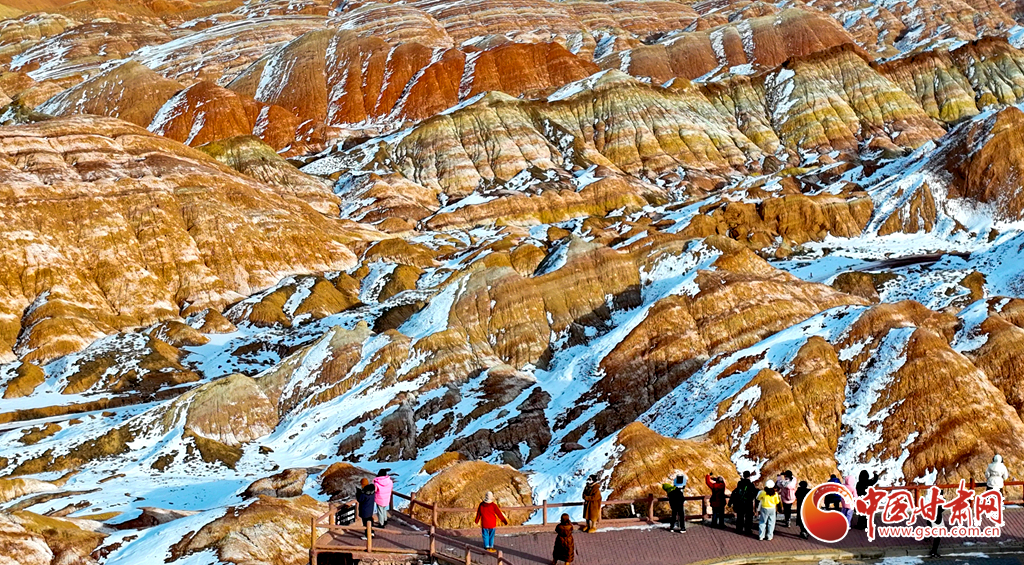 春節(jié)假期,張掖市七彩丹霞景區(qū)內人頭攢動,全國各地游客慕名而來,欣賞宛如夢幻仙境般的雪浴丹霞地貌景觀,在領略大西北壯美景色中歡歡喜喜過大年。