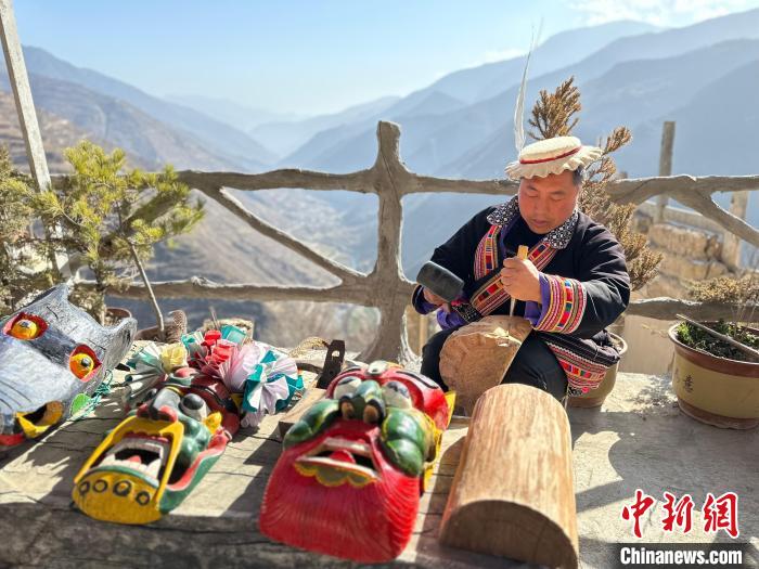 雕刻、打磨、上色……甘肅隴南市文縣鐵樓藏族鄉(xiāng)強曲村,白馬人薛剛一家四代人都精于木工。日前中新網(wǎng)記者走訪村子時,薛剛坐在自家院子里,伏案制作池哥晝所用面具。池哥晝是白馬人保留最完整、最具特色民族舞蹈,面具是重要道具之一。薛剛制作的面具不僅用于周邊村子的池哥晝中,而且被廣州、上海等地的客商購買收藏。他時常將自己的想象融入面具中,用心打磨使其更具“靈氣”。他說,白馬人中從事面具雕刻的手藝人不多,最近他物色了一個“00后”徒弟,對方興趣濃厚,希望將這門手藝保護傳承好。圖為薛剛在院子里雕刻面具。閆姣 攝