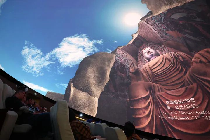 2024年9月4日,游客在莫高窟數字展示中心觀看球幕電影《夢幻佛宮》。新華社記者 陳斌 攝