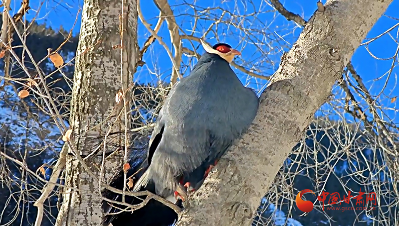 巡護(hù)員用鏡頭記錄下畫面,二十余只藍(lán)馬雞宛如冰雪精靈,在銀裝素裹的喬木林間愜意“聚會”。三五成群的藍(lán)馬雞用強健有力的爪喙翻動雪層,精準(zhǔn)定位埋藏的草籽,專心干飯。距地面十余米的楊樹上,擔(dān)任警戒的“哨兵”不時發(fā)出低沉的咕嚕聲,蓬松的尾羽在陽光下流轉(zhuǎn)著金屬般的光澤。最引人注目的當(dāng)數(shù)林間空地上的“時裝秀”了,“模特”們輪流抖動藍(lán)黑漸變的羽毛,頸后白色耳羽簇如流蘇輕顫,精彩的表演折服了五位“評委”,它們個個目不轉(zhuǎn)睛,生怕漏掉每一個演出細(xì)節(jié)。這場持續(xù)數(shù)小時的藍(lán)馬雞“聚會”也為祁連山國家公園生態(tài)系統(tǒng)健康運轉(zhuǎn)做出了生動注腳。