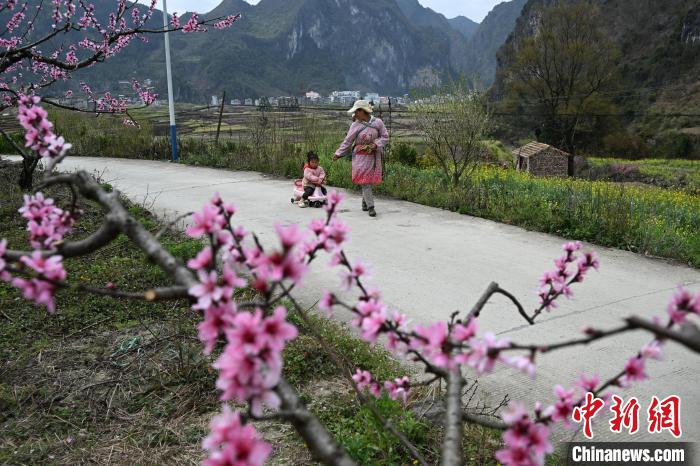 時下正是桃花盛開的時節(jié),在廣西田林縣浪平鎮(zhèn)浪平村,村民種植的桃花競相綻放。滿樹繁花與錯落村舍相互映襯,還有樹旁玩耍的孩童、樹下勞作的村民,動靜交織,構(gòu)成一幅絕美的田園春景圖。圖為3月15日,在廣西田林縣浪平鎮(zhèn)浪平村,村民在桃樹下勞作。黃數(shù)情 攝