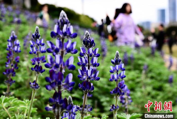 3月16日,游客在公園觀賞魯冰花。春日,福州花海公園魯冰花、小蒼蘭、油菜花等鮮花盛放,吸引了許多民眾前來(lái)漫步賞花,享受春天美好時(shí)光。中新社記者 張斌 攝