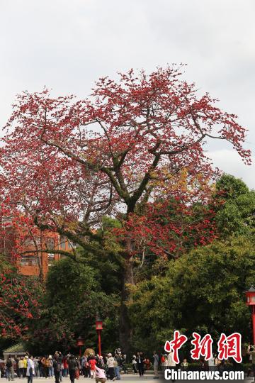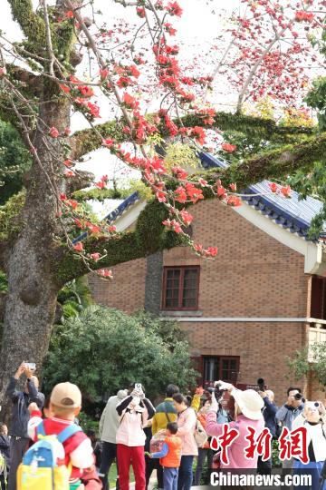 廣州中山紀(jì)念堂春日上演“最美木棉紅”