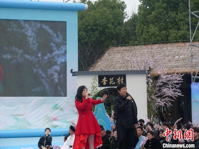 2025中國農(nóng)民詩會暨第十屆杏花村文化旅游節(jié)16日在安徽池州啟幕,臺灣知名歌手熊天平偕妻子楊洋聯(lián)袂獻唱《天涯共此時》等歌曲。