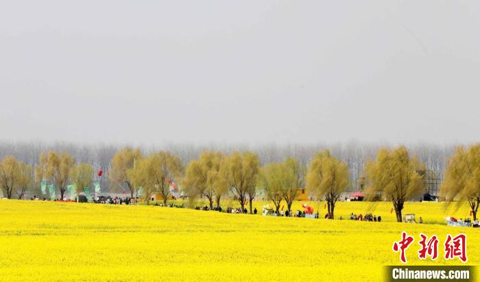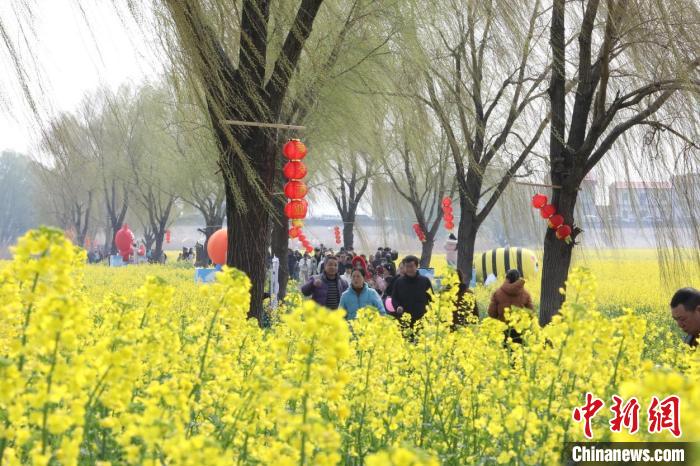 圖為彭澤縣棉船鎮(zhèn)萬(wàn)畝油菜花進(jìn)入盛花期,吸引眾多游客前來踏青賞花。彭琴 攝