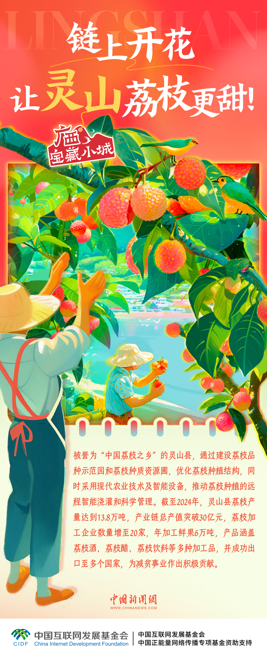 被譽為“中國荔枝之鄉(xiāng)”的靈山縣,正以創(chuàng)新之姿引領現(xiàn)代果業(yè)發(fā)展浪潮,打造從鮮果到深加工的完整產(chǎn)業(yè)鏈,多元產(chǎn)品暢銷海內(nèi)外,實“荔”出圈。一起走進廣西寶藏小城靈山,感受荔枝產(chǎn)業(yè)的智慧轉型↓↓↓