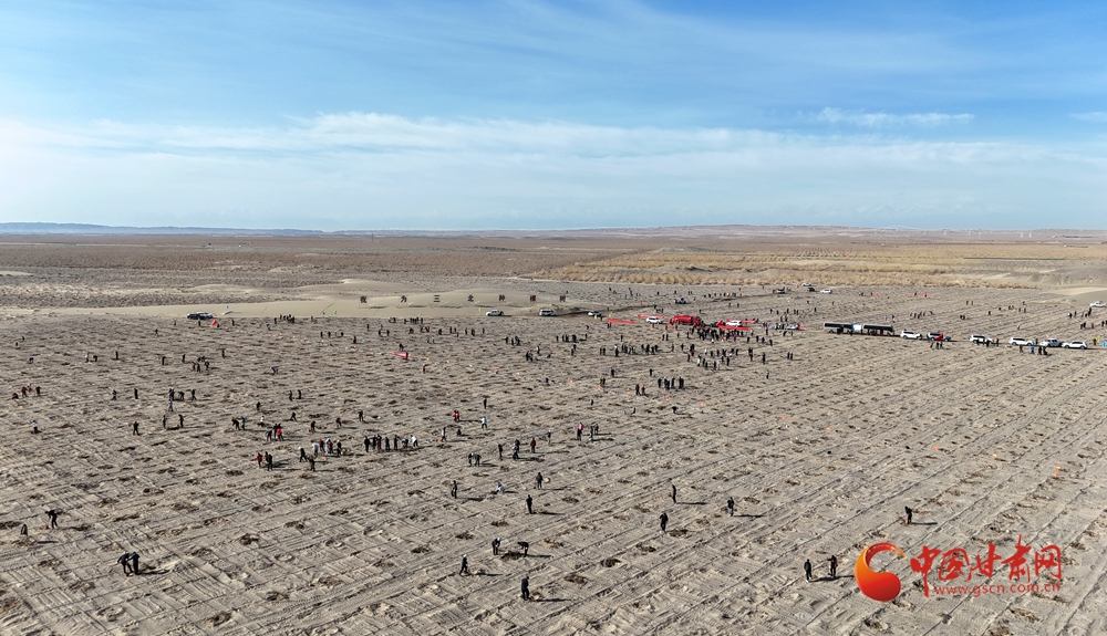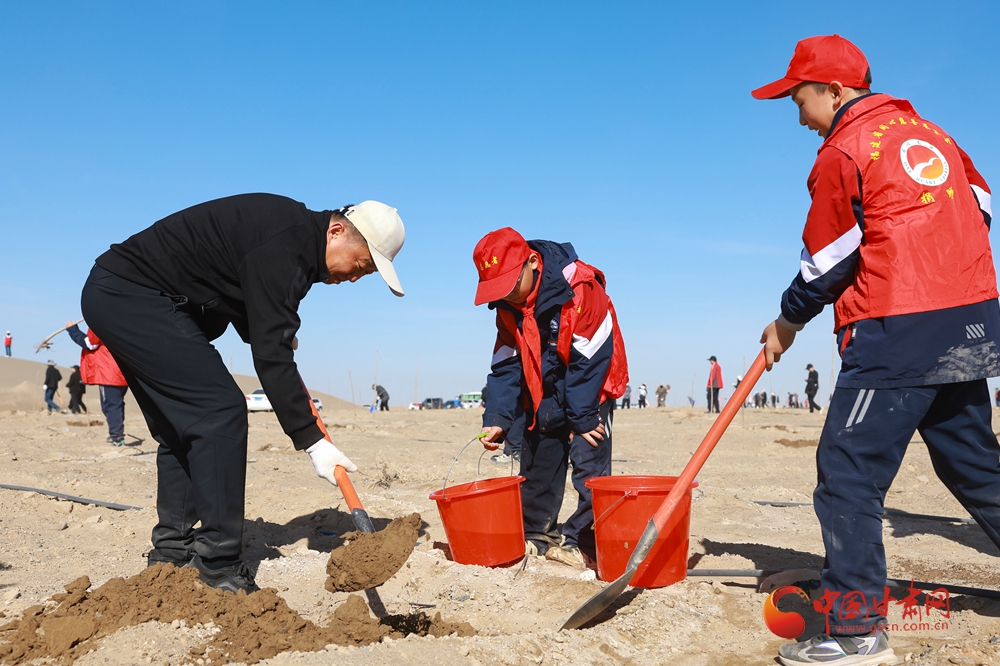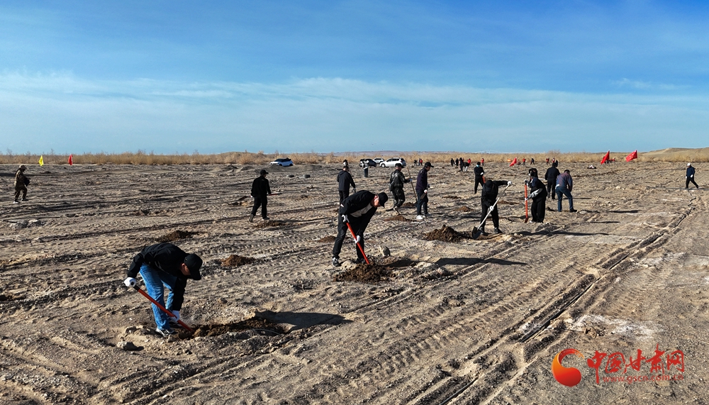 4月9日,酒泉市金塔縣金核公路城西義務(wù)植樹基地,來自酒泉市直機關(guān)和金塔縣的干部職工以及學(xué)生開展義務(wù)植樹活動。