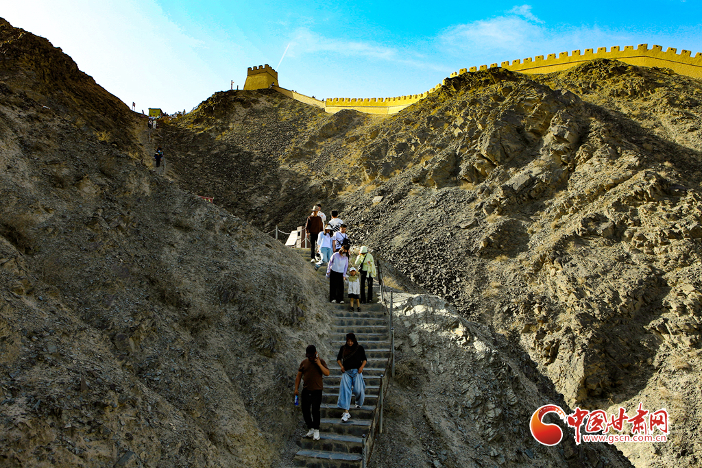 “五一”假期,甘肅省嘉峪關(guān)懸壁長(zhǎng)城旅游景區(qū)迎來(lái)了客流高峰,景區(qū)內(nèi)游人如織,熱鬧非凡。來(lái)自五湖四海的游客們紛紛慕名而來(lái),踏上這段陡峭險(xiǎn)峻的懸壁長(zhǎng)城,親身體驗(yàn)其獨(dú)特的雄壯偉岸。他們站在城墻上,極目遠(yuǎn)眺,盡情領(lǐng)略著古長(zhǎng)城所獨(dú)有的壯麗自然景觀與深厚歷史底蘊(yùn)。