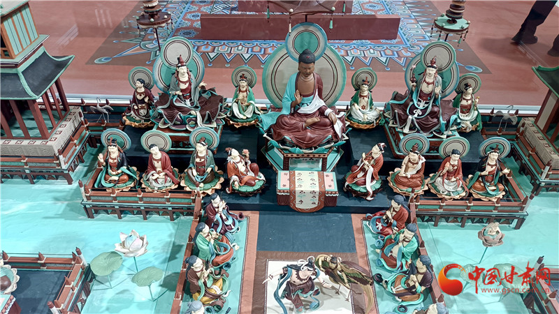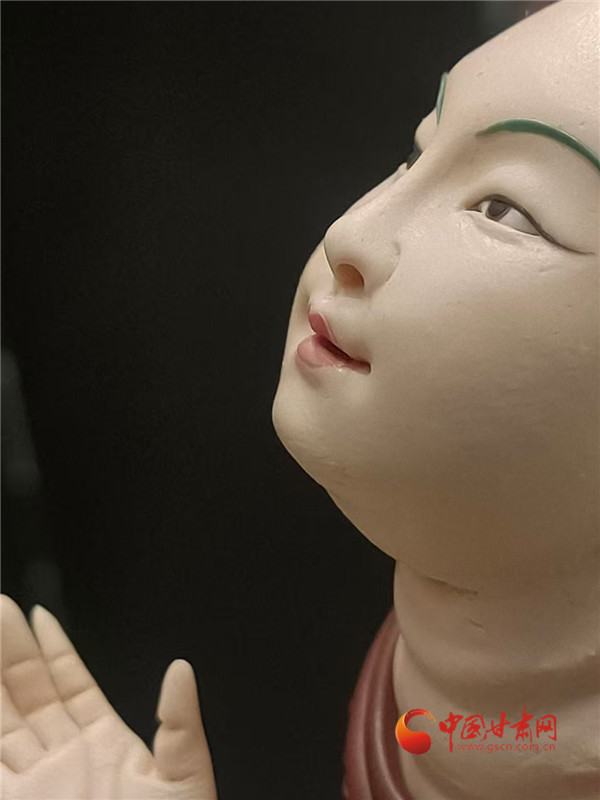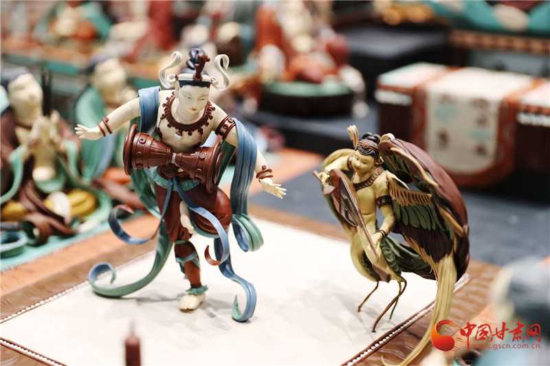 今年蘭洽會(huì)甘肅非遺館,正中央的敦煌文化題材《觀無(wú)量壽經(jīng)變》面塑受到客商全員追捧。經(jīng)過(guò)這里的人都會(huì)駐足欣賞,感受面塑藝術(shù)的精彩絕倫,其中,敦煌題材的面塑,飛天人物似乎從壁畫里飛了出來(lái),栩栩如生。