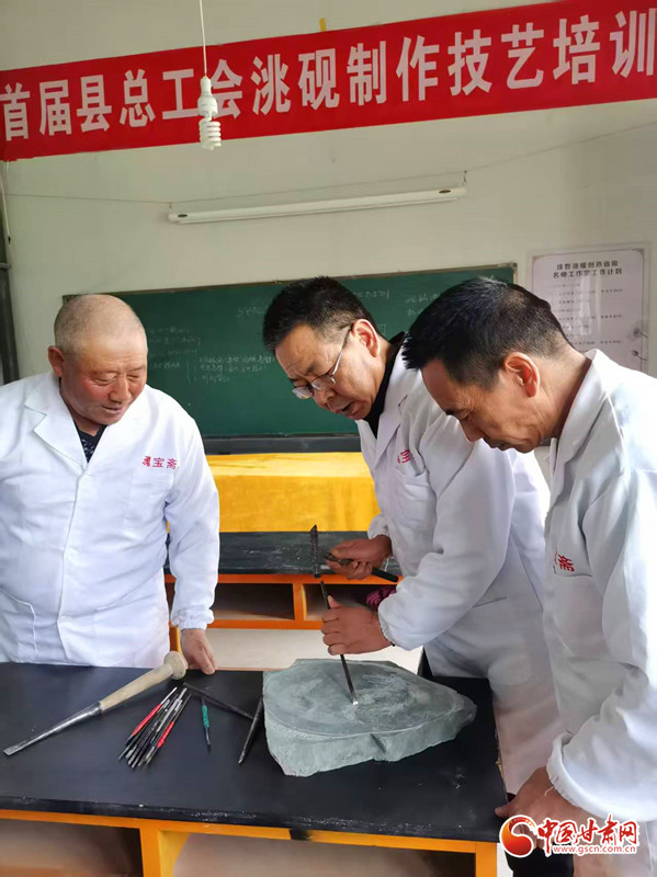 依托岷縣國家級非物質文化遺產洮硯制作技藝傳習所,徐哲搭建起了完整的傳承體系。