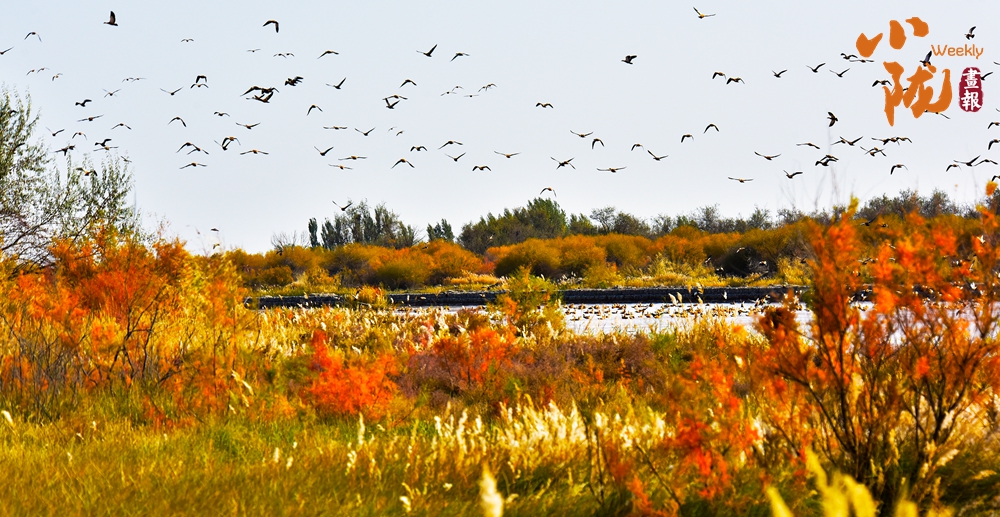 河堤兩岸各種樹木及灌木疊翠流金,綿延數(shù)里;碧波蕩漾,林鳥相依,呈現(xiàn)出獨(dú)具特色的沙漠濕地風(fēng)貌。
