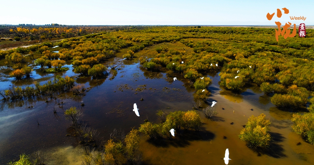 每到冬季,濕地的胡楊換上金黃盛裝,與穿梭其間的湖水、溫暖柔和的蘆葦蕩,繪制成一幅水墨長卷,將初冬的浪漫鋪滿天地。
