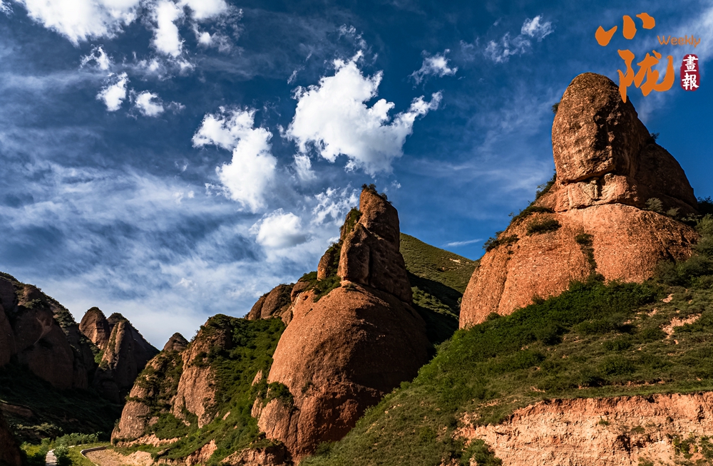 遠遠望去,山谷間、山巖上,一簇簇、一片片墨綠色草叢,將丹霞的紅、初冬的彩、山體的褐輕輕暈染,構(gòu)成一幅美麗的冬日美景。