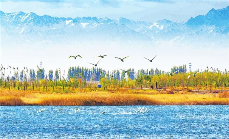 15公里的討賴河風(fēng)情線宛如翠帶環(huán)繞,碧波蕩漾、一步一景,東湖、迎賓湖等18個(gè)城市湖泊如明珠鑲嵌。昔日的戈壁荒灘,如今已被改造成了藍(lán)天、碧水、綠地相映生輝的優(yōu)美風(fēng)景區(qū)。