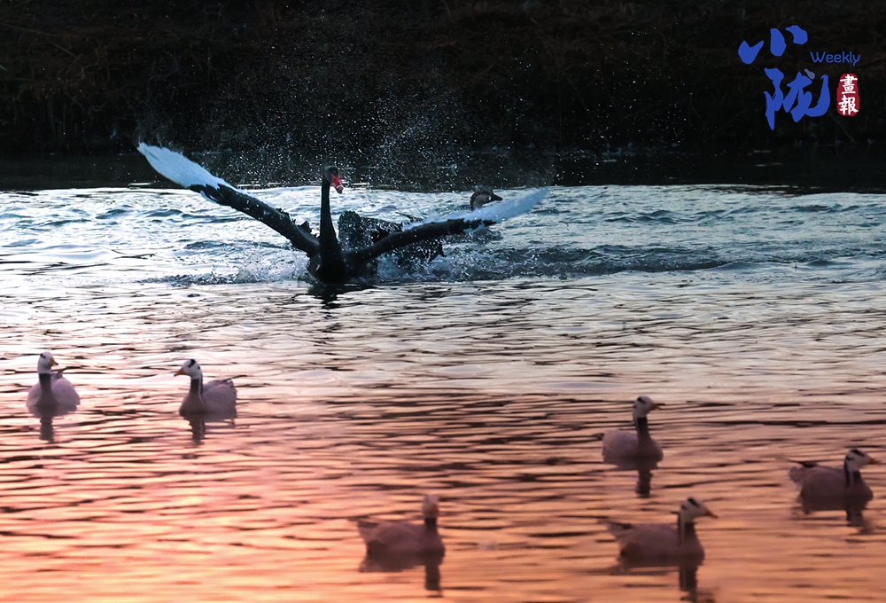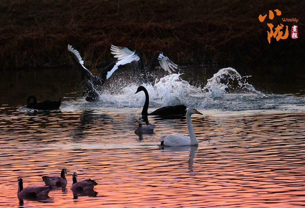 這里聚集了天鵝、赤麻鴨、灰雁等多種水鳥,它們?cè)邳S昏里愜意地游弋,或扎進(jìn)水里捕魚,或相互追逐戲水的畫面,既震撼又溫柔,成為攝影愛好者和游人爭(zhēng)相追逐的“冬日奇景”。